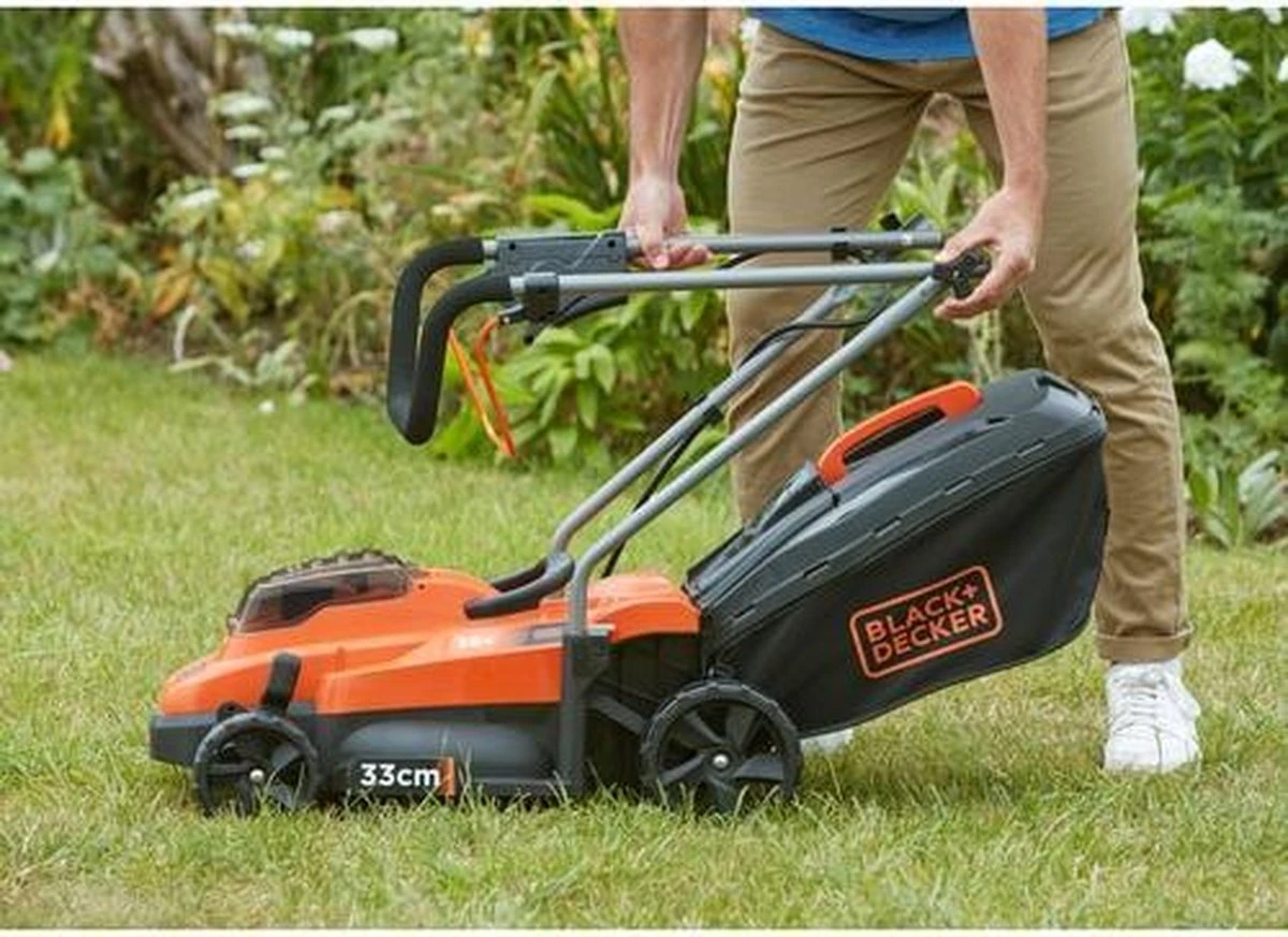 La lame incurvée vous permet de bénéficier de meilleures performances de coupe et de collecter plus d’herbe dans le robuste collecteur de 35 litres. Vous pouvez ainsi tondre l’herbe plus longtemps et éviter les coupures de gazon sur votre pelouse. Les poignées intégrées et pliables facilitent encore plus le levage et permettent un rangement compact dans le garage ou l’abri de jardin.