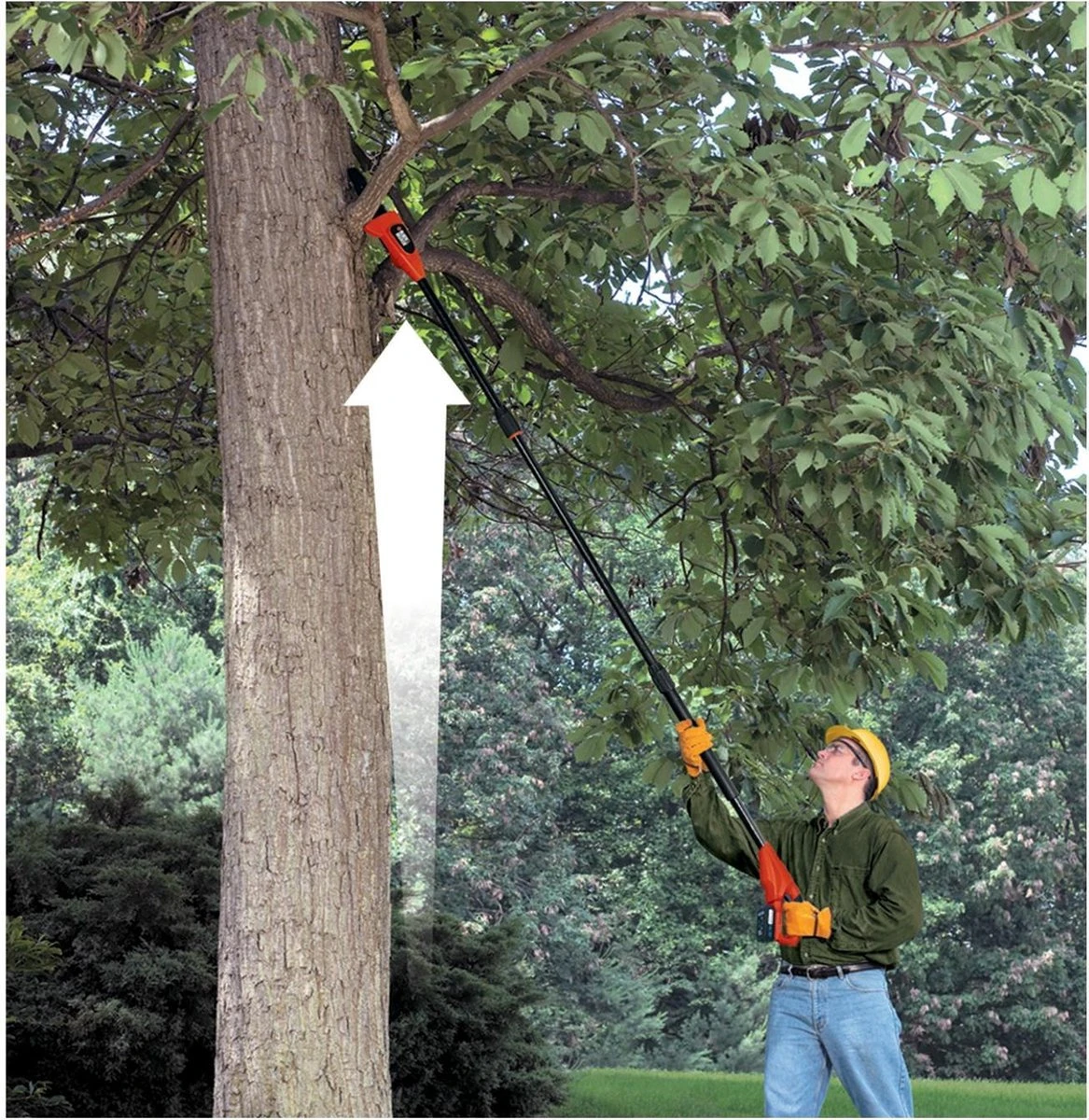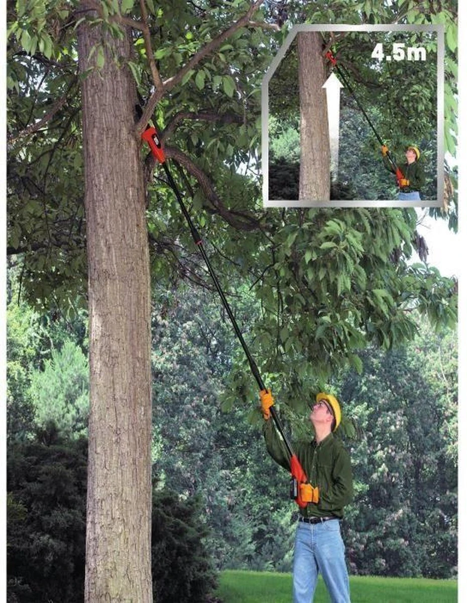 Longue distance – 18V fourni sans batterie – Manche télescopique: 1,74 à 2,92 m – Grande capacité de coupe.